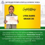 Lyra Garg of Class 2G has secured the Third Position in the Solo
