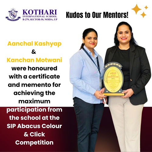 Along with our young achievers, Aanchal Kashyap and Kanchan Motwani were recognised with a certificate and memento for ensuring maximum participation from the school at the SIP Abacus Colour & Click Competition. Their efforts reflect the spirit of encouragement and excellence that defines our school community.