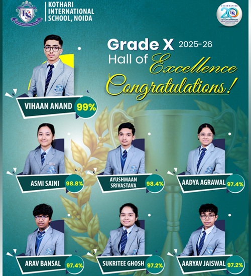 Hall of Excellence | Grade X (2025–26) Kothari International School, Noida proudly celebrates its Top 7 Achievers – a remarkable showcase of dedication, consistency, and academic brilliance. With 7 shining stars (including tied ranks), these young achievers have set inspiring Read more