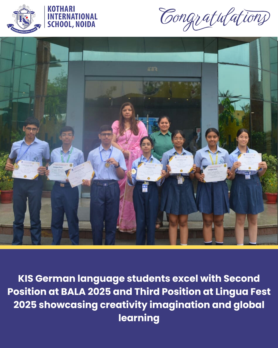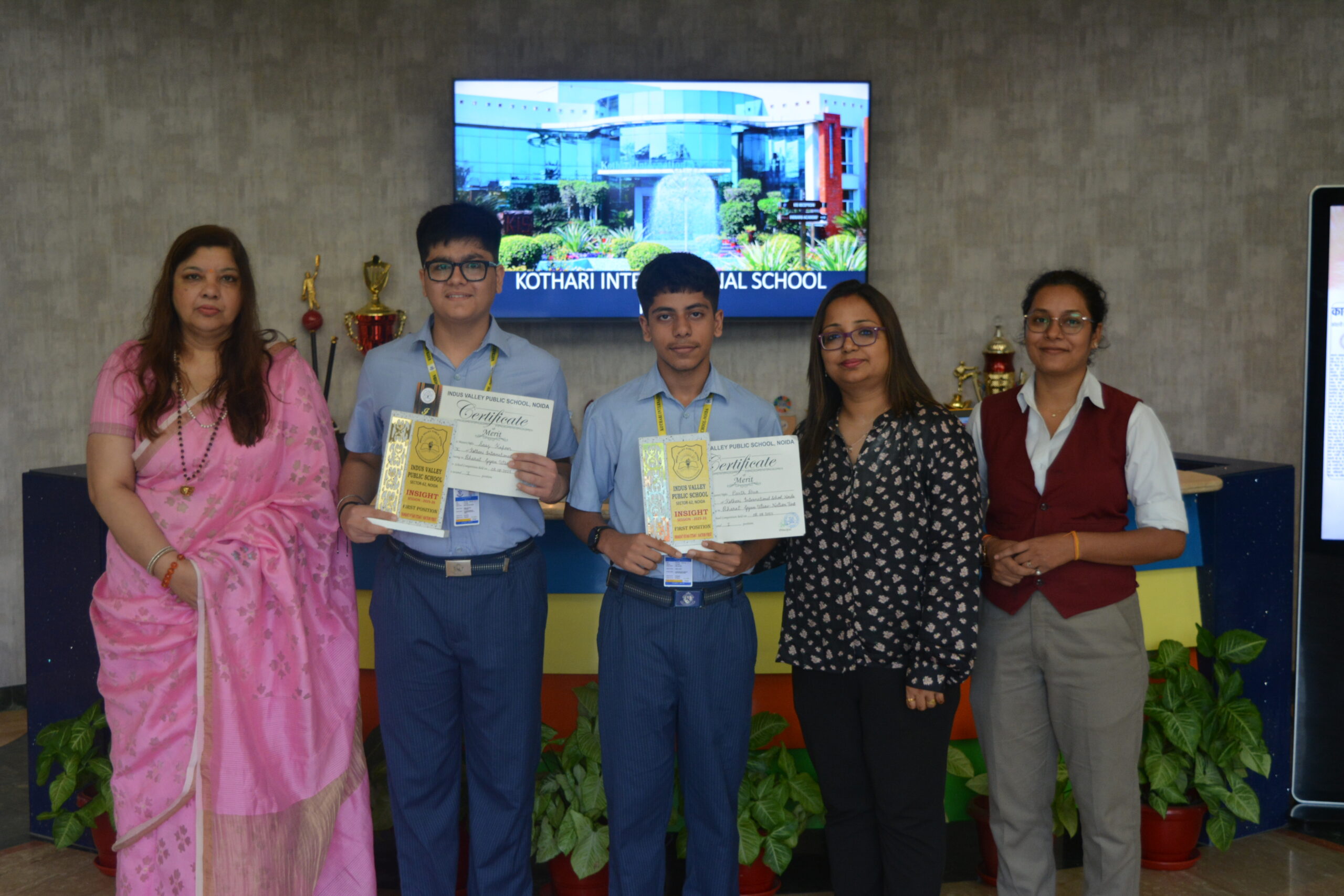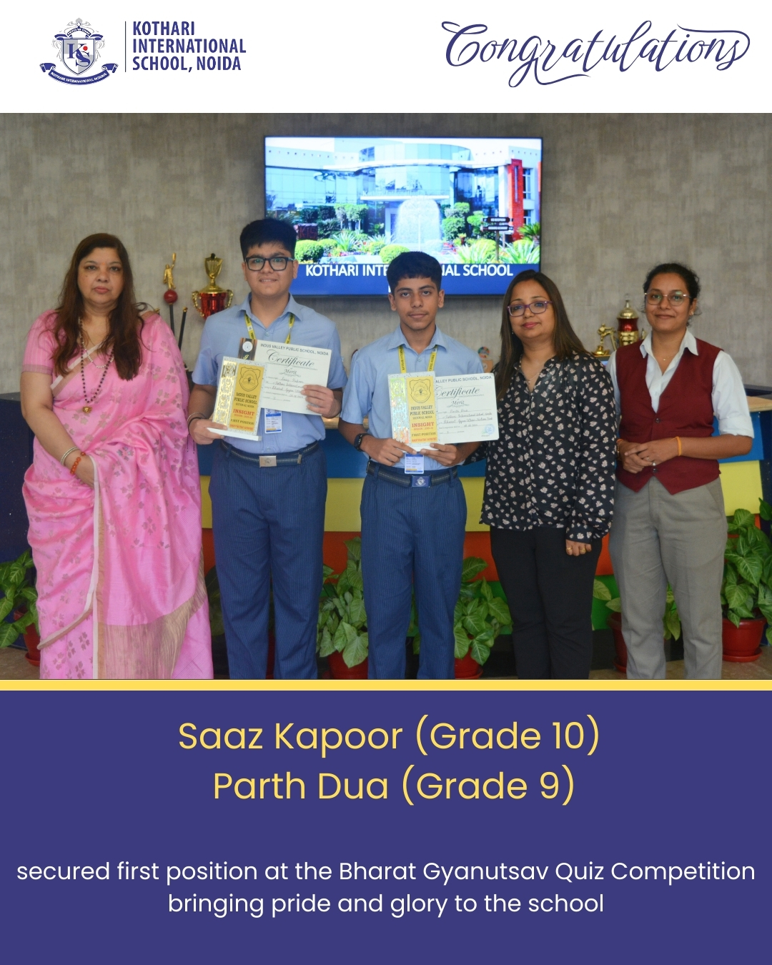 We are proud to share that the brilliant minds of Kothari International School, Noida have once again brought laurels to the institution. Our students from Grades 9 and 10 secured the 1st Position in the prestigious Bharat Gyanutsav Quiz Competition hosted by Indus Valley School.