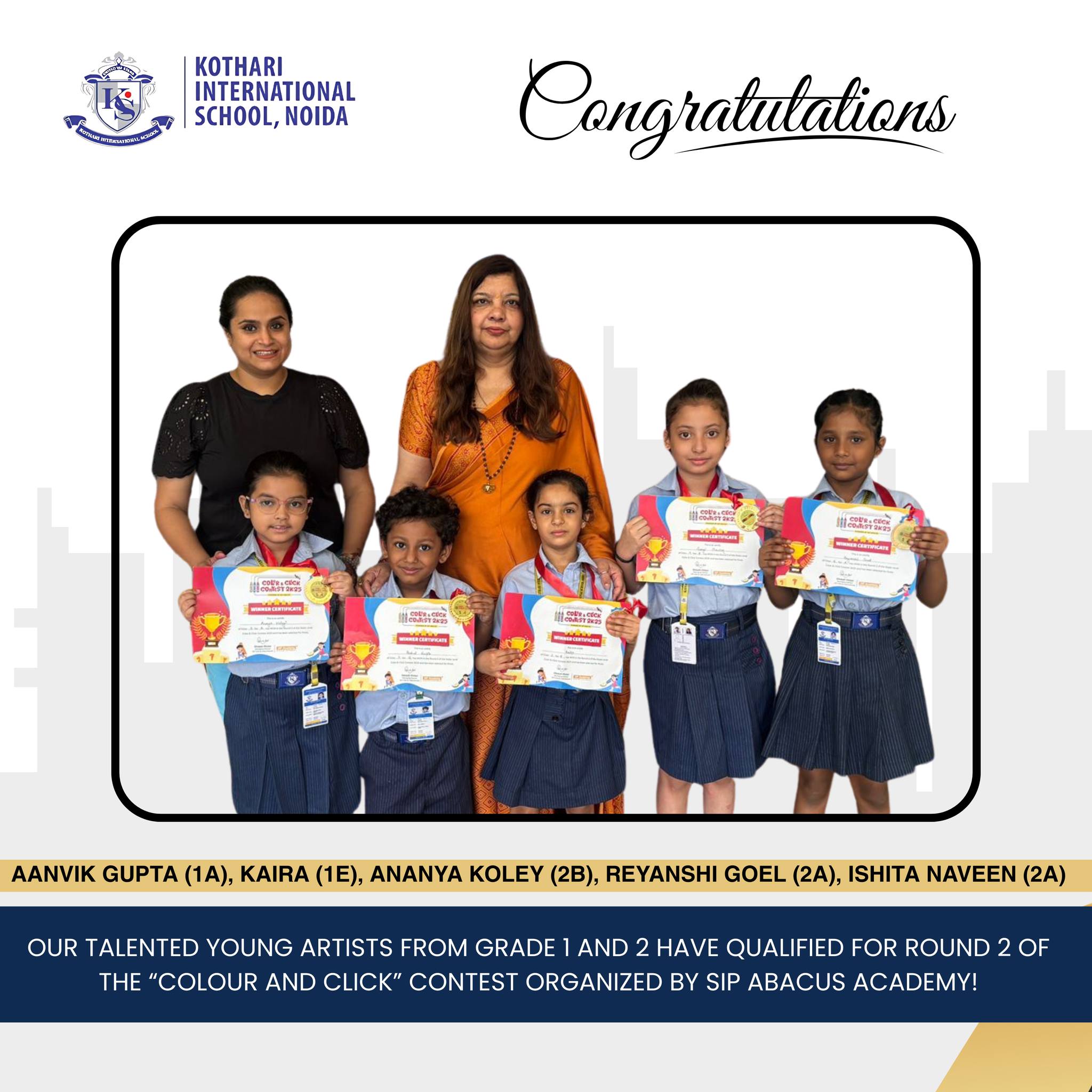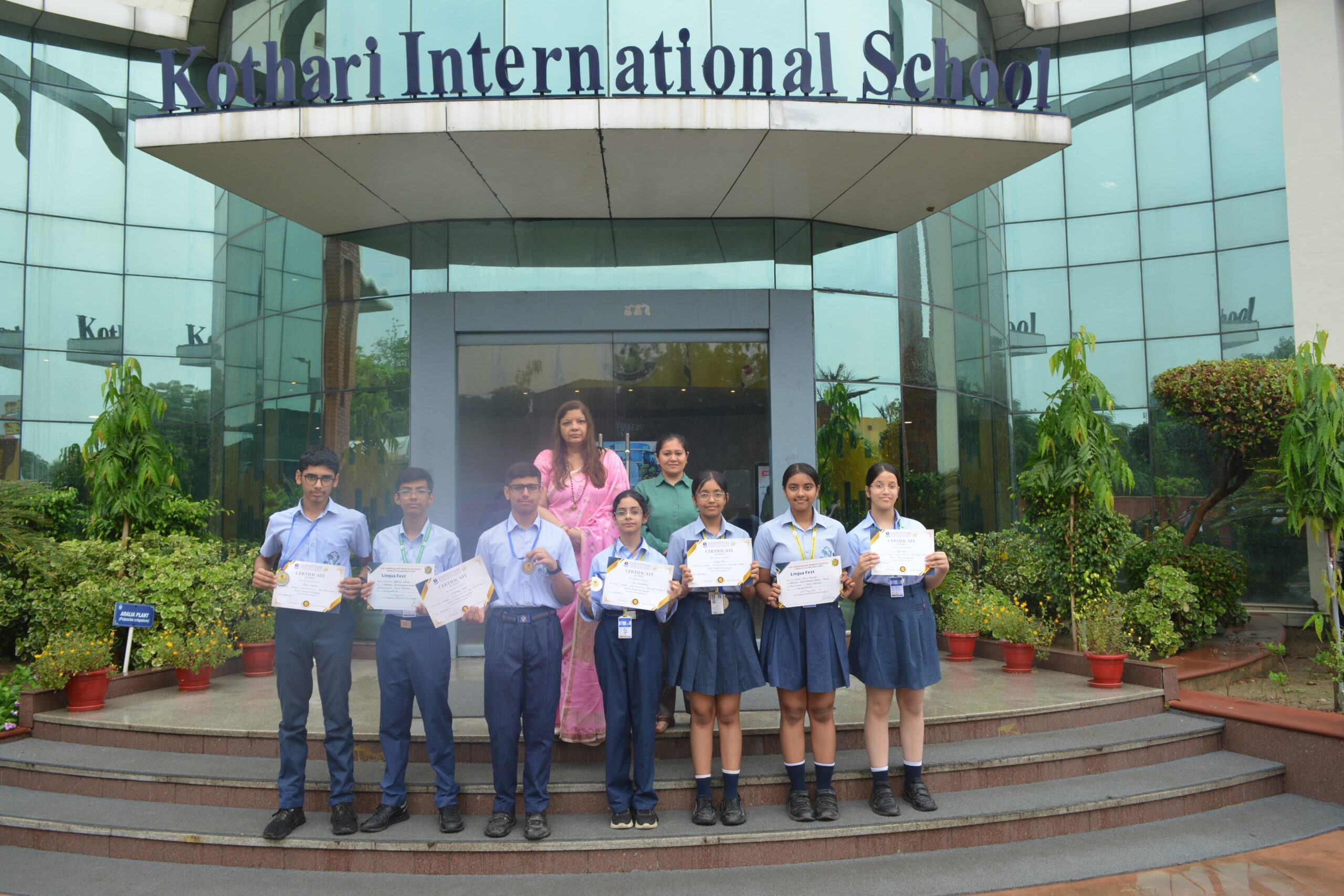 Kothari International School takes immense pride in celebrating the remarkable success of our brilliant students in grades 4 & 5! They’ve earned numerous accolades and medals at the International Olympiad of English Language, organized by Silver Zone Foundation.