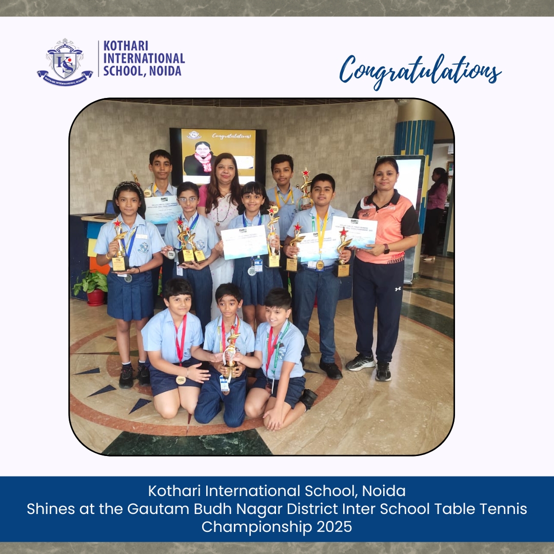 We are thrilled to share the outstanding achievements of our students at the Gautam Budh Nagar District Inter School Table Tennis Championship 2025, held at the Table Tennis Hall, Sports Facility Complex, Noida Stadium.