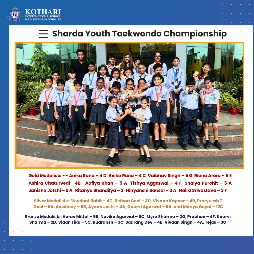 We are proud to celebrate the outstanding achievements of our students at the Sharda Youth Taekwondo Championship. Their dedication, discipline, and determination shone brightly as they competed with skill and sportsmanship, bringing home a remarkable tally of medals.
