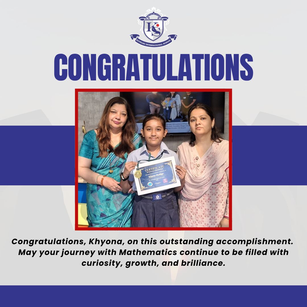 Congratulations, Privya, on this well-deserved success. The entire Kothari International School community celebrates your victory and looks forward to many more achievements ahead.