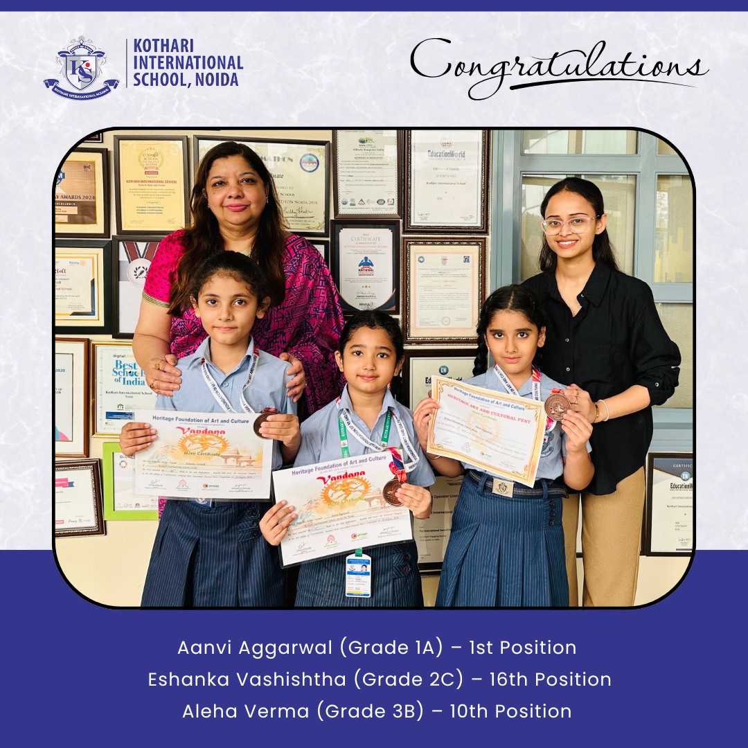 Celebrating the remarkable achievements of our Kothari International School Noida stars at the Bhartiya Kala Mahotsav 2023!