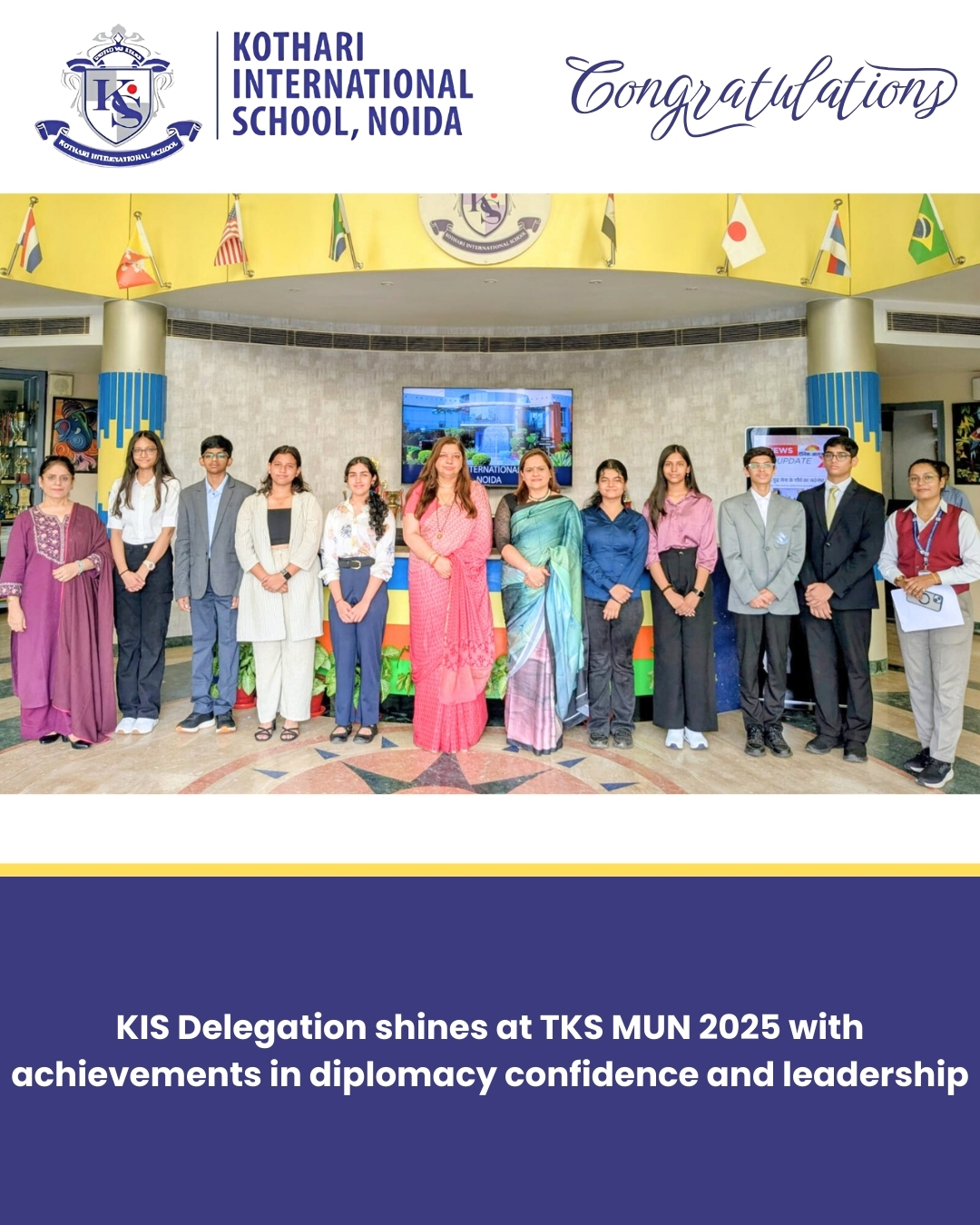 On the 19th and 20th of August, eight bright stars from Kothari International School carried the torch of dreams, determination, and diplomacy to The Khaitan School Model United Nations Conference 2025-26. Amidst 350 young delegates, our students stood tall, demonstrating that the courage to speak and the compassion to listen can indeed shape a better tomorrow.