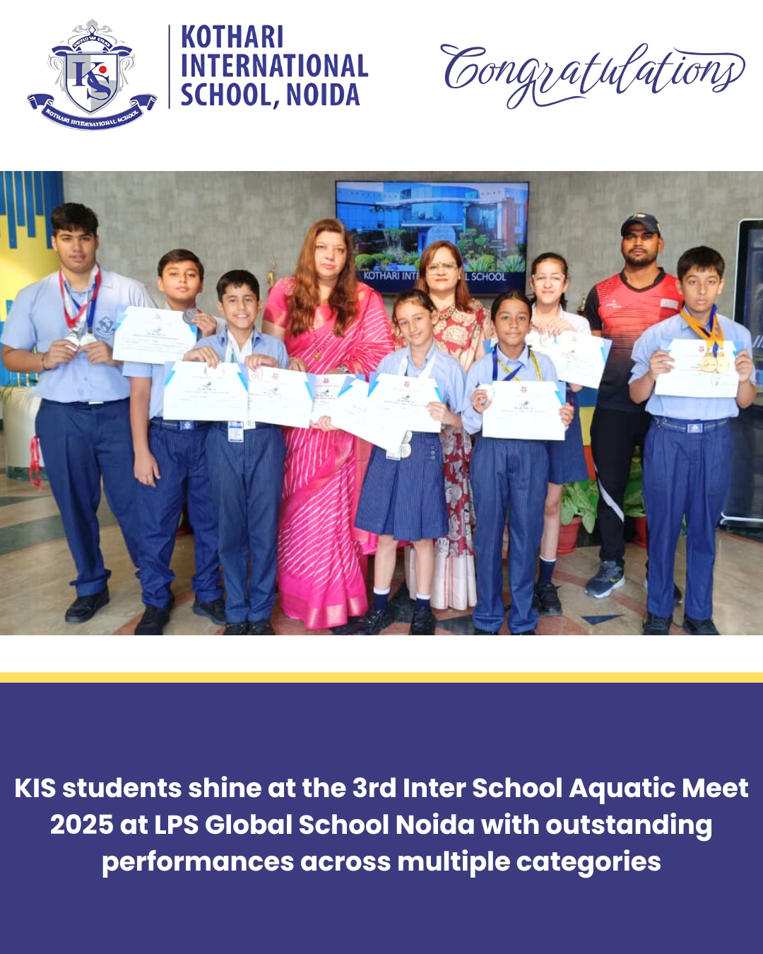 Kothari International School students made us proud at the 3rd Inter-School Aquatic Meet held in July at LPS Global School, Noida.