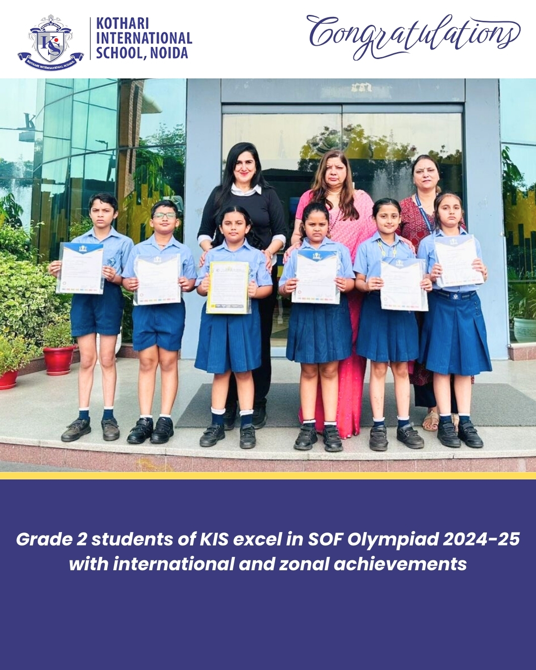 Kothari International School takes immense pride in celebrating the remarkable achievements of our brilliant Grade 2 students in the SOF Olympiad 2024–25. Their dedication, hard work, and love for learning have brought great laurels to the school.