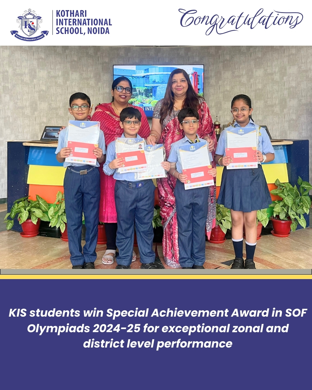Kothari International School is immensely proud to celebrate the outstanding achievements of our brilliant Grade 1 students in the SOF International Math Olympiad 2024-25.