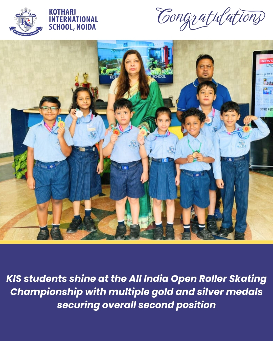 𝑇ℎ𝑒 𝐾𝑜𝑡ℎ𝑎𝑟𝑖 𝐼𝑛𝑡𝑒𝑟𝑛𝑎𝑡𝑖𝑜𝑛𝑎𝑙 𝑆𝑐ℎ𝑜𝑜𝑙 𝑡𝑎𝑘𝑒𝑠 𝑖𝑚𝑚𝑒𝑛𝑠𝑒 𝑝𝑟𝑖𝑑𝑒 𝑖𝑛 𝑡ℎ𝑒 𝑎𝑐ℎ𝑖𝑒𝑣𝑒𝑚𝑒𝑛𝑡𝑠 𝑜𝑓 𝑠𝑘𝑎𝑡𝑒𝑟𝑠 𝑤ℎ𝑜 𝑒𝑥𝑐𝑒𝑙𝑙𝑒𝑑 𝑑𝑢𝑟𝑖𝑛𝑔 𝑡ℎ𝑒 1𝑠𝑡 𝐼𝐶𝑂𝑁𝑆 𝑅𝑜𝑙𝑙𝑒𝑟-𝑆𝑘𝑎𝑡𝑖𝑛𝑔 𝐶ℎ𝑎𝑚𝑝𝑖𝑜𝑛𝑠ℎ𝑖𝑝 2022 ℎ𝑒𝑙𝑑 𝑎𝑡 𝐿𝑖𝑜𝑛𝑧 𝑆𝑝𝑜𝑟𝑡𝑠 𝐶𝑙𝑢𝑏, 𝑁𝑖𝑡𝑖 𝐾ℎ𝑎𝑛𝑑 – 02, 𝐼𝑛𝑑𝑖𝑟𝑎𝑝𝑢𝑟𝑎𝑚, 𝐺ℎ𝑎𝑧𝑖𝑎𝑏𝑎𝑑 𝑜𝑛 04 𝑆𝑒𝑝𝑡𝑒𝑚𝑏𝑒𝑟 2022. 𝑇ℎ𝑒𝑖𝑟 𝑡𝑎𝑙𝑒𝑛𝑡 𝑎𝑛𝑑 𝑝𝑒𝑟𝑠𝑒𝑣𝑒𝑟𝑎𝑛𝑐𝑒 𝑏𝑟𝑜𝑢𝑔ℎ𝑡 ℎ𝑜𝑚𝑒 𝑡ℎ𝑒 𝑏𝑖𝑔 𝑤𝑖𝑛. 𝑇ℎ𝑒 𝐹𝑖𝑟𝑠𝑡 𝑃𝑜𝑠𝑖𝑡𝑖𝑜𝑛 𝑤𝑎𝑠 𝑏𝑎𝑔𝑔𝑒𝑑 𝑏𝑦 𝑉𝑖𝑘𝑟𝑎𝑛𝑡 𝑆𝑖𝑛𝑔ℎ 𝑅𝑎𝑗𝑎𝑤𝑎𝑡 𝑜𝑓 𝐺𝑟𝑎𝑑𝑒 3𝐹.𝑇ℎ𝑒 𝑆𝑒𝑐𝑜𝑛𝑑 𝑃𝑜𝑠𝑖𝑡𝑖𝑜𝑛 𝑤𝑎𝑠 𝑏𝑎𝑔𝑔𝑒𝑑 𝑏𝑦 𝐴𝑑𝑣𝑖𝑘 𝐺𝑢𝑝𝑡𝑎 𝑜𝑓 𝐺𝑟𝑎𝑑𝑒 𝐾2𝐷, 𝑃𝑟𝑎𝑡ℎ𝑎𝑚 𝑆𝑎𝑛𝑔𝑤𝑎𝑛 𝑜𝑓 𝐺𝑟𝑎𝑑𝑒 1𝐷, 𝑎𝑛𝑑 𝑇𝑢𝑠ℎ𝑖𝑘𝑎 𝐴𝑔𝑎𝑟𝑤𝑎𝑙 𝑜𝑓 𝐺𝑟𝑎𝑑𝑒 3𝐵.𝑇ℎ𝑒 𝑇ℎ𝑖𝑟𝑑 𝑃𝑜𝑠𝑖𝑡𝑖𝑜𝑛 𝑤𝑎𝑠 𝑏𝑎𝑔𝑔𝑒𝑑 𝑏𝑦 𝑆ℎ𝑎𝑦𝑛𝑎 𝐶ℎ𝑜𝑢𝑑ℎ𝑎𝑟𝑦 𝑜𝑓 𝐺𝑟𝑎𝑑𝑒 5𝐶.𝑊𝑎𝑦 𝑡𝑜 𝑔𝑜 𝑠𝑘𝑎𝑡𝑒𝑟𝑠! 𝐹𝑎𝑛𝑡𝑎𝑠𝑡𝑖𝑐 𝑎𝑐ℎ𝑖𝑒𝑣𝑒𝑚𝑒𝑛𝑡! 𝑌𝑜𝑢 ℎ𝑎𝑣𝑒 𝑚𝑎𝑑𝑒 𝑢𝑠 𝑎𝑙𝑙 𝑝𝑟𝑜𝑢𝑑!