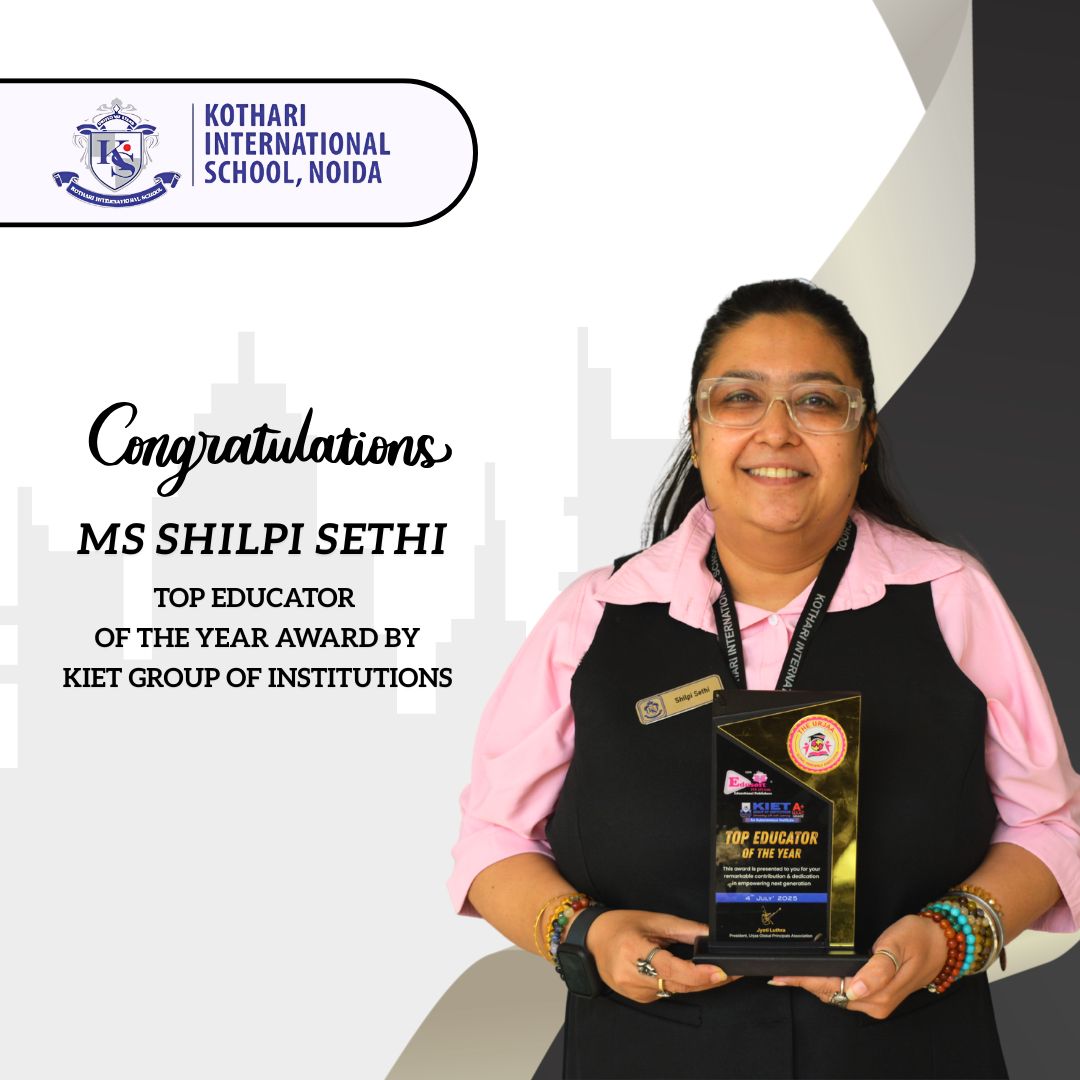 We are incredibly proud to share that Ms. Shilpi Sethi has been conferred with the Top Educator of the Year Award by KIET Group of Institutions, Ghaziabad, in recognition of her exceptional contribution to the field of education.