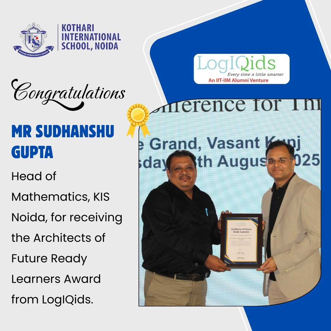 Congratulations to our Head of Mathematics, Mr. Sudhanshu Gupta, for receiving the “Architects of Future Ready Learners” award from LogIQids. This prestigious honor recognizes his exceptional dedication and invaluable contributions to student education. We are immensely proud of his achievement and deeply grateful for his commitment in representing KIS Noida with excellence.