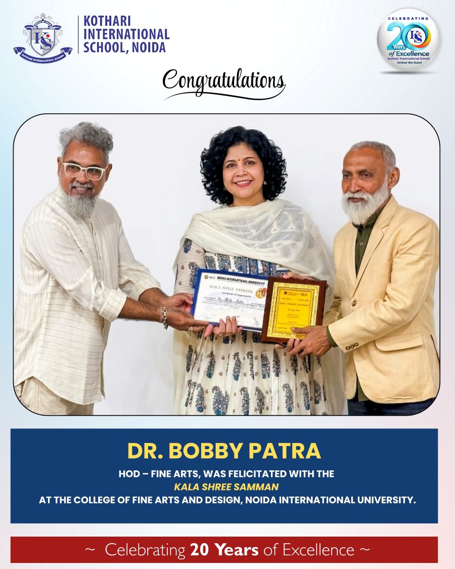 Kothari International School, Noida, proudly congratulates Dr. Bobby Patra, HOD – Fine Arts, on being felicitated with the prestigious Kala Shree Samman at the College of Fine Arts and Design, Noida International University.